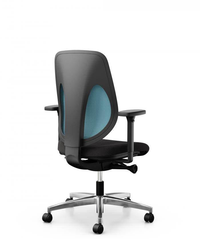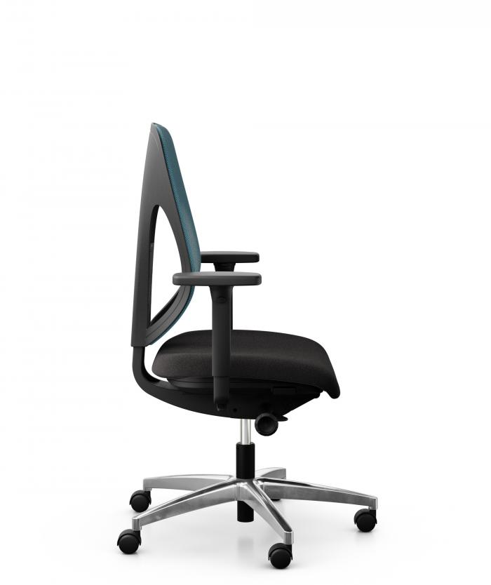 - Fußkreuz: Flaches, poliertes Aluminium (Ø 71 cm) mit Rollen für harte oder weiche Böden.