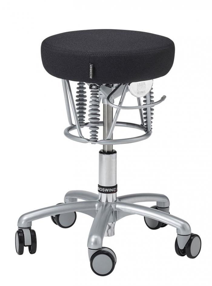 Für den medizinischen Bereich ist der BIOSWING Foxter mit abriebfestem, desinfizierbarem Kunstleder ausgestattet. Zusätzlich stehen zahlreiche Stoffe und Farben aus der aktuellen Farbkarte zur Auswahl.